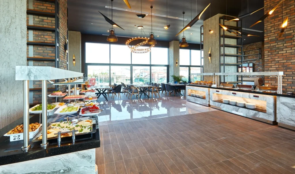 Менюто включва свежа салата, основно ястие по избор – риба/пилешки/телешки кюфтенца, приготвени на дървени въглища. Десертът е Firinda Tahin Helva (фърънда тахин халва), напитките са вода и чай.